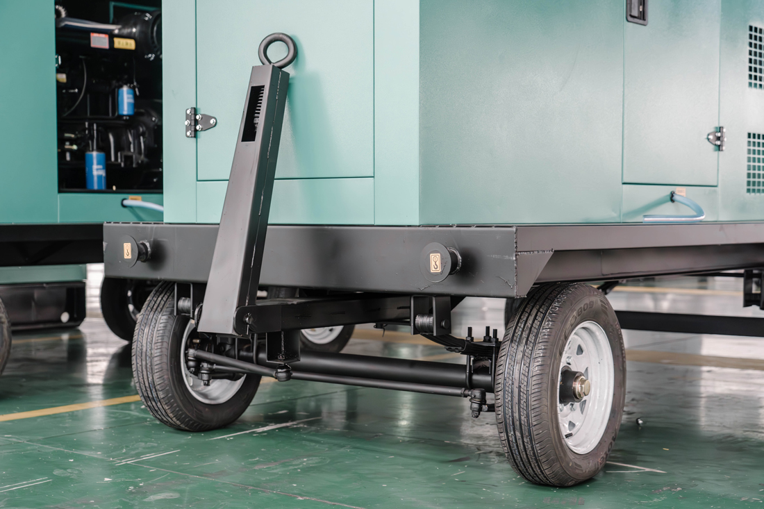 与固定式或简易移动式机组不同,本批次机组采用专业拖车式底盘设计: